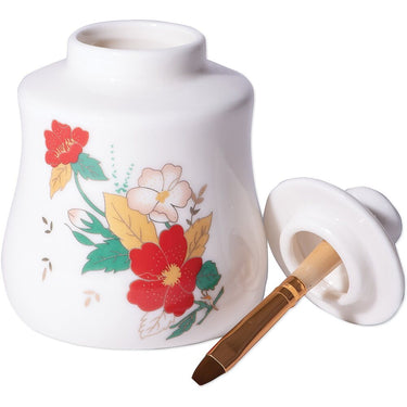 Cuticle Oil Jar with Brush. 100 mL. porcelain cuticle oil jar with brush. Measures 3.75" High x 2.5" Diameter,