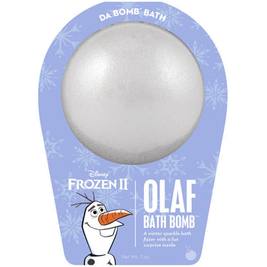 Da Bomb Bath Bomb Frozen II - OLAF BATH BOMB - A Winter Sparkle Bath Fizzer with a Fun Suprise Inside! / 7 oz. - 2.75" Diameter. Hop into your tub and let it go! Watch carefully as this snow blast fizzer dissolves, because there is a fun surprise inside! Perfect for adults and kids alike (everyone loves surprises). Use one bomb per bath. These bombs are 2.75 inches in diameter - about the size of a tennis ball.