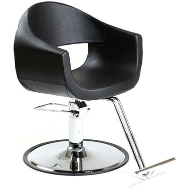 Darby Elegant Styling Chair with Heavy-Duty Hydraulic Pump / Black. With the Darby Styling Chair, your clients will enjoy a comfortable and stylish seating experience. The precision stitching and sleek high-quality professional-grade upholstery make this chair a beautiful addition to any salon. The polished chrome hydraulic base, footrest, and lever provide stability and durability, while the adjustable height allows for a customized experience.