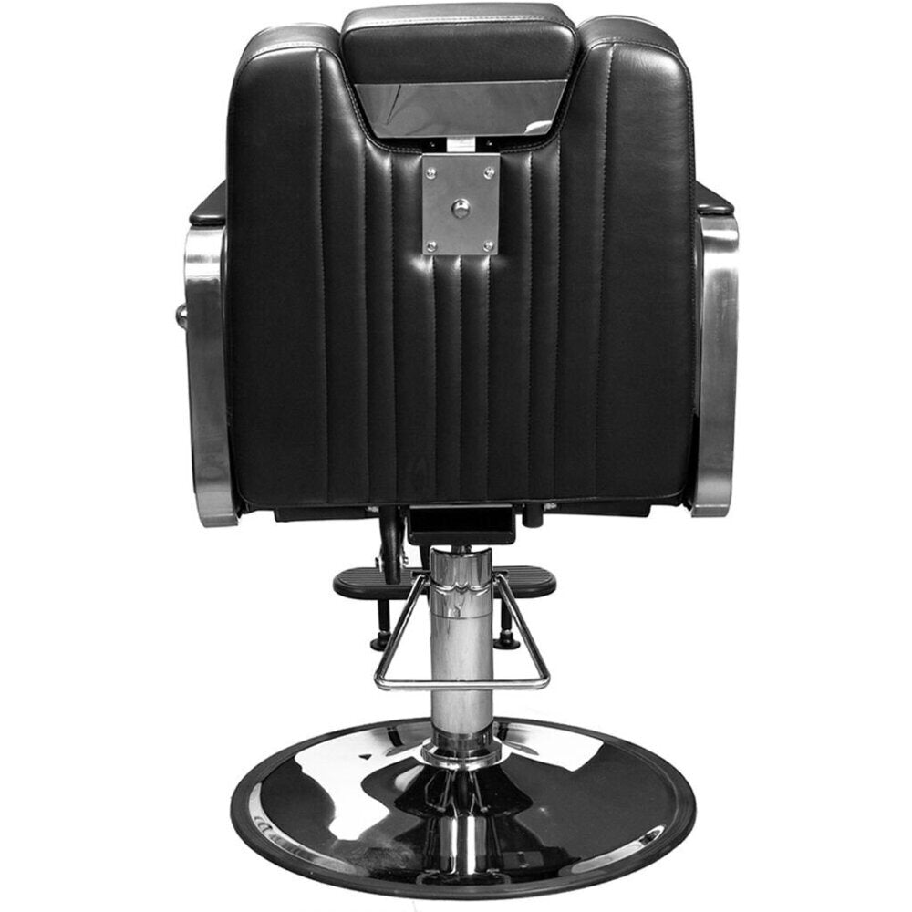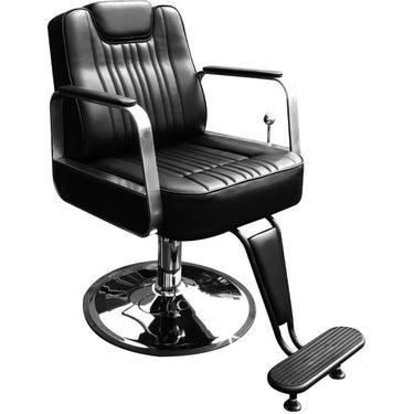 Deco Bailey All-Purpose Chair - Black. The Bailey All-Purpose Chair is a heavy duty and comfortable reclining chair. It's strong construction and looks makes is suitable for barbers, stylist, and estheticians. Featuring an adjustable recessed headrest. Its reclining back adds another element of functionality and will work great in any salon or barbershop. Also includes a polished chrome hydraulic base, chrome footrest, brushed stainless steel arms with upholstered padding, and rich black vinyl leather upholstery.