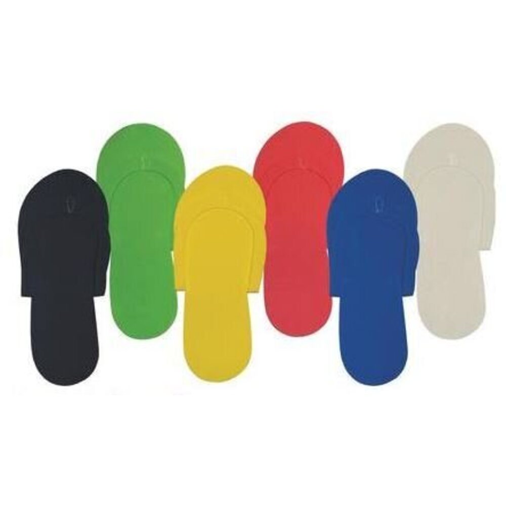 Deluxe Disposable Pedicure Slippers - Assorted Colors / 12 Pair. Enhance your spa or salon's pedicure services with these Deluxe Disposable Pedicure Slippers, designed to offer clients a premium experience while maintaining high standards of hygiene. The combination of comfort, convenience, and style makes these slippers a must-have for any professional beauty establishment. Whether you're performing a relaxing pedicure or a quick touch-up, these slippers are ideal for ensuring your clients enjoy the utmost comfort without compromising sanitation.