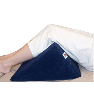 Relieves pain in the lower back by flexing the lumbar spine while reclining. Made from a soft, blue velveteen material. 10" x 21" x 16"