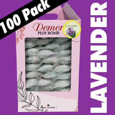 Demer Fizzy Pedi Bomb - Box/100 Tablets - Lavender. A Fizzing Sensation for the Ultimate Pedicure Experience. Discover the ultimate indulgence for your feet with the Demer Pedi Bomb. Designed to elevate every pedicure, this luxurious bath bomb transforms an ordinary foot soak into a blissful spa retreat. Let the enchanting fizz and captivating aromas whisk you away to a world of relaxation and rejuvenation.