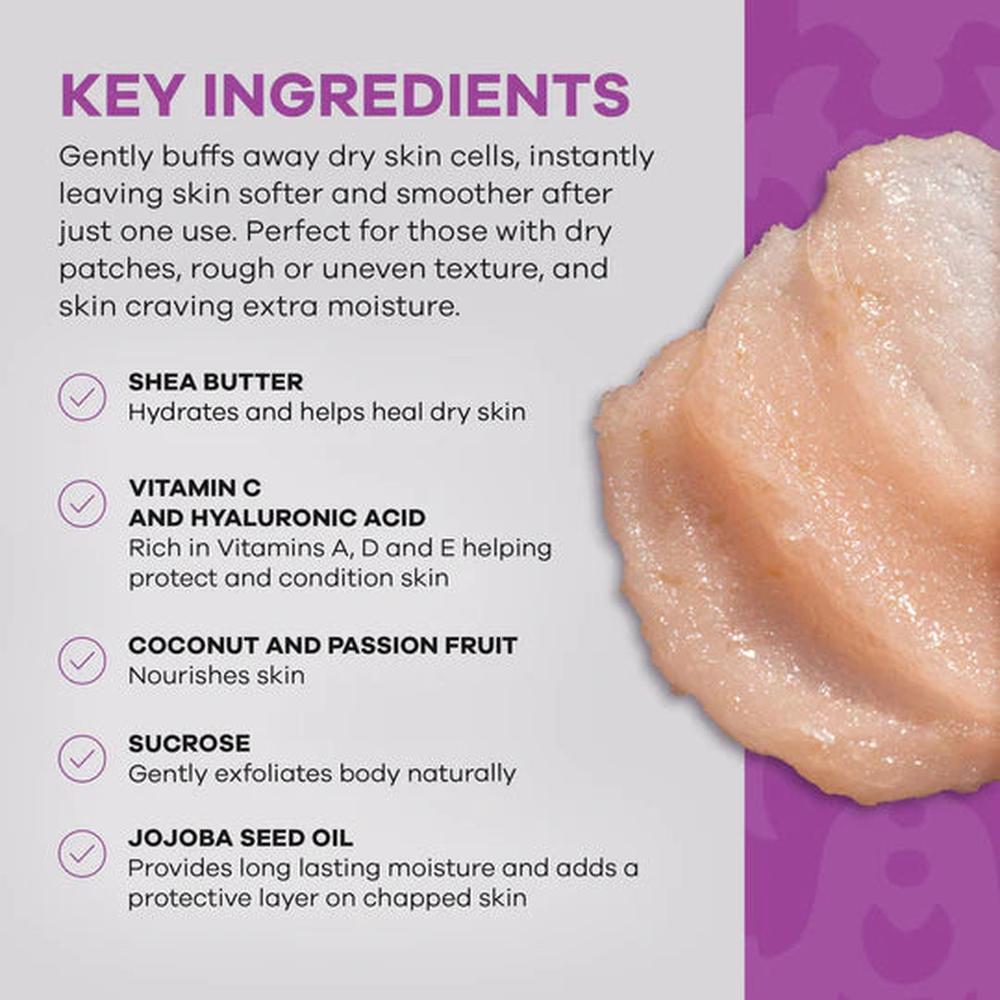 All skin types looking for a gentle, effective polish—especially those dealing with dryness from seasonal shifts, indoor heating/AC, or frequent shaving. It’s an easy retail recommendation for clients who want smoother legs and arms, softer heels and elbows, or a more even canvas for body makeup and self-tanner.