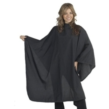 Designed for efficiency and comfort, this cape is ideal for hair cutting services in any professional setting. Its sleek black design and durable material make it a staple for salons and barbershops, ensuring a professional experience for every client.