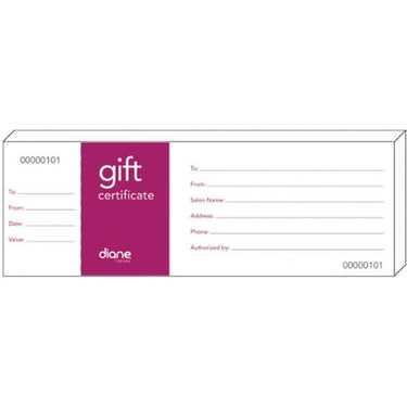 - Revamped Design: The new design of Diane Salon Gift Certificates boasts a sleek and modern look, exuding professionalism and sophistication. With a duplicate stub for record-keeping, bid farewell to messy carbon copies and streamline your administrative tasks effortlessly.