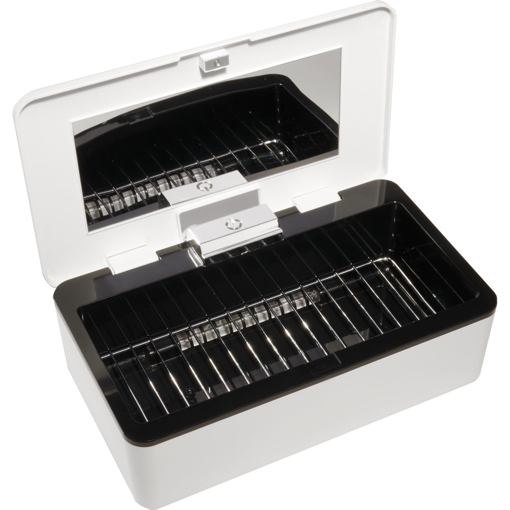 The clear lid allows staff and clients to see tools inside, reinforcing transparency and confidence in your sanitation process. This visual cue subtly communicates professionalism and attention to detail—qualities that clients associate with premium service providers.
