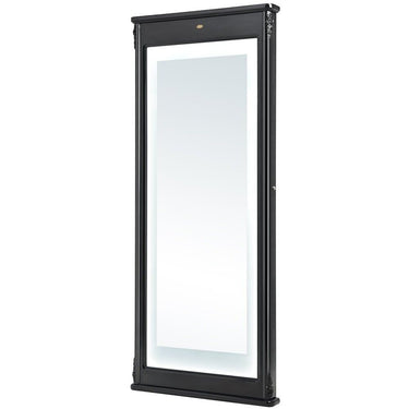 DIR Ares LED Lighted Styling Station - BLACK. Simple yet sophisticated,the Ares wall-mounted styling station showcases a full length mirror with LED lighting,and framed by glossy white borders and refined-floral accents.