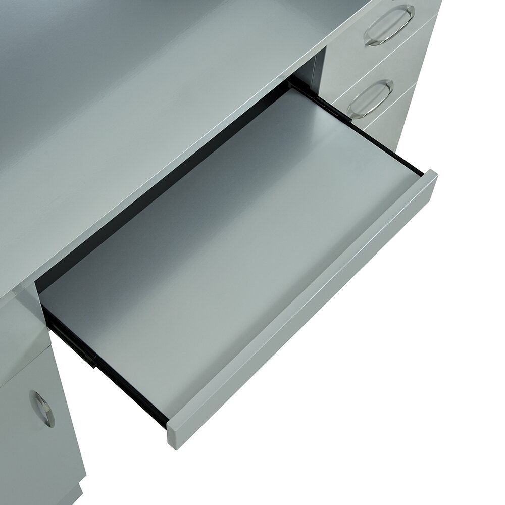 DIR Langara Reception Desk with LED Lighting - Available in White, Black or Grey. Simplicity is the key to designing a sleek and modern Reception Area, Dir Reception Desk will Langara be the focal point of the design. LED lighting along with aluminum accents is sure to impress people as they enter.