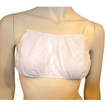 Disposable Backless Bra - White. This disposable bra offers coverage during body treatments and waxing. The elastic straps slide over the arms and shoulders to hold the bra in place. It's constructed of non-woven spunbond polypropylene fabric that feels soft to the skin. This disposable garment is created to meet the highest standards of comfort and wearability. One size fits most. 6-Pack