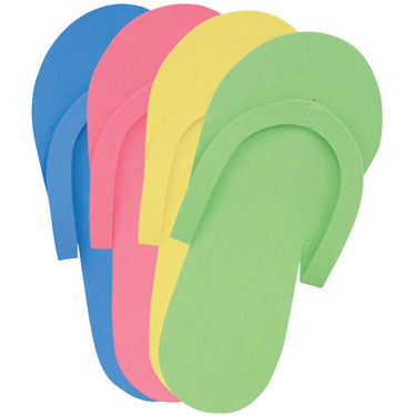 Disposable Non-Slip Pedi Slippers / 12 Pack. Non-slip pedislippers with stitched toe in 4 assorted colors: blue, pink, yellow and green.