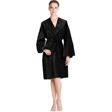 Disposable Non-Woven Kimono Robe - Black / 50 pack. Give your clients a relaxing experience by providing them with disposable spa robes that are functional and comfortable. These cost effective kimono robes are ideal for massage clients.