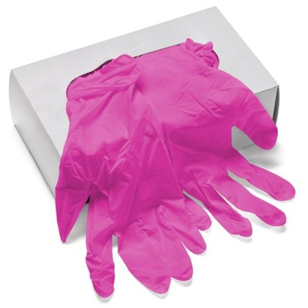 Disposable Powder Free Pink Vinyl Gloves - MEDIUM / 100 Pack. These pink vinyl gloves can be used for a variety of spa services. They're ambidextrous and come in a convenient dispenser box. Latex-, powder-, and odor-free. Details: