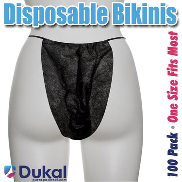 Disposable Single Use Bikini Panty - BLACK / 100 Pack - Individually Wrapped Bikini Panty by Dukal. Provide your clients a soft, non-woven Bikini by Dukal Reflections for use during spa, massage, or wax treatments. Disposable spa Bikini underwear have versatile uses in massage, mud, scrubs, wraps, waxing and other spa body treatments. Black color. 100 Count. Indifivually wrapped.