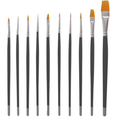 DL Pro 10-Piece Nail Art Brush Set. Transform your nail art with the DL Pro 10-Piece Nail Art Brush Set. Our synthetic brush set offers an array of options to create stunning designs and effects on nails. The 4 flat and 6 round brushes come in assorted sizes, allowing for ultimate precision in every stroke. Whether you're creating intricate patterns or adding a touch of glam to a classic manicure, this brush set has got you covered. The durable synthetic bristles ensure long-lasting use, making it a reliable addition to your salon or spa toolkit. Elevate your nail game and impress your clients with the DL Pro 10-Piece Nail Art Brush Set.
