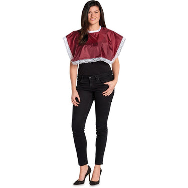 DL Pro Lace Make-Up Cape, Velcro Burgundy / 12 Pack. Looking for a durable and stylish make-up cape for your beauty salon or spa? Look no further than the DL Pro Lace Make-Up Cape. Made with high-quality nylon material and featuring a gorgeous floral ruffle lace trim, this cape not only looks beautiful but also provides ultimate protection for your clients' clothing during makeup application. The Velcro neck closure ensures a secure and comfortable fit for clients of all sizes, while the pack of 12 makes it easy to stock up and always have enough capes on hand for your busy salon.