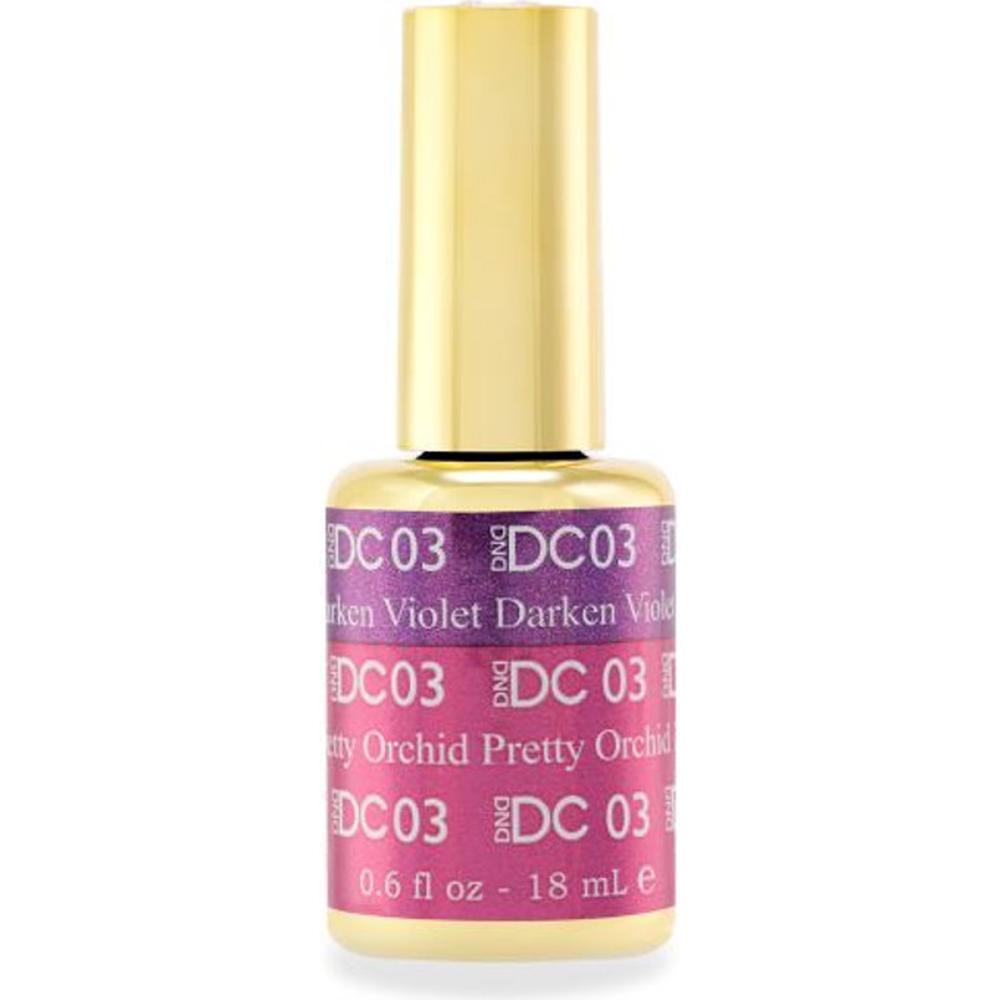 DND DC Mood - 03 Darken Violet / 0.6 oz. - 18 mL. Transform your clients' nail experience with DND DC Mood Gel, a revolutionary gel polish that changes color with temperature fluctuations. This dynamic gel polish offers an exciting and interactive element to any manicure, allowing your clients to enjoy a shift in shades as their body temperature or environment changes. Perfect for salons looking to offer something unique, DND DC Mood Gel combines stunning color shifts with the long-lasting durability of DND's premium gel formula.