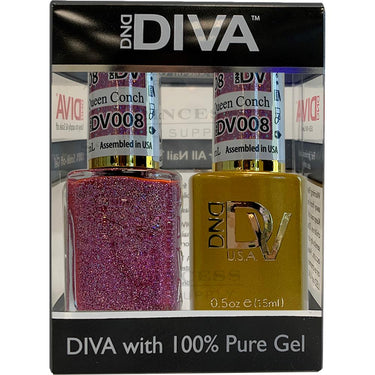DND Diva Duo Gel - #008 - Queen Conch / Soak-Off Gel Polish 0.5 oz. + Nail Lacquer 0.5 oz. Enhance your nail service offerings with the DND Diva Duo Gel, a perfect combination of soak-off gel polish and matching nail lacquer that delivers long-lasting, vibrant results. This duo set is designed for professionals who want to provide their clients with the flexibility of a durable gel manicure alongside the convenience of traditional lacquer. With superior coverage, rich pigmentation, and a chip-resistant finish, the DND Diva Duo ensures that your clients' nails stay flawless for weeks.