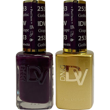DND Diva Duo Gel - #253 - Gothic Grape / Soak-Off Gel Polish 0.5 oz. + Nail Lacquer 0.5 oz. Enhance your nail service offerings with the DND Diva Duo Gel, a perfect combination of soak-off gel polish and matching nail lacquer that delivers long-lasting, vibrant results. This duo set is designed for professionals who want to provide their clients with the flexibility of a durable gel manicure alongside the convenience of traditional lacquer. With superior coverage, rich pigmentation, and a chip-resistant finish, the DND Diva Duo ensures that your clients' nails stay flawless for weeks.