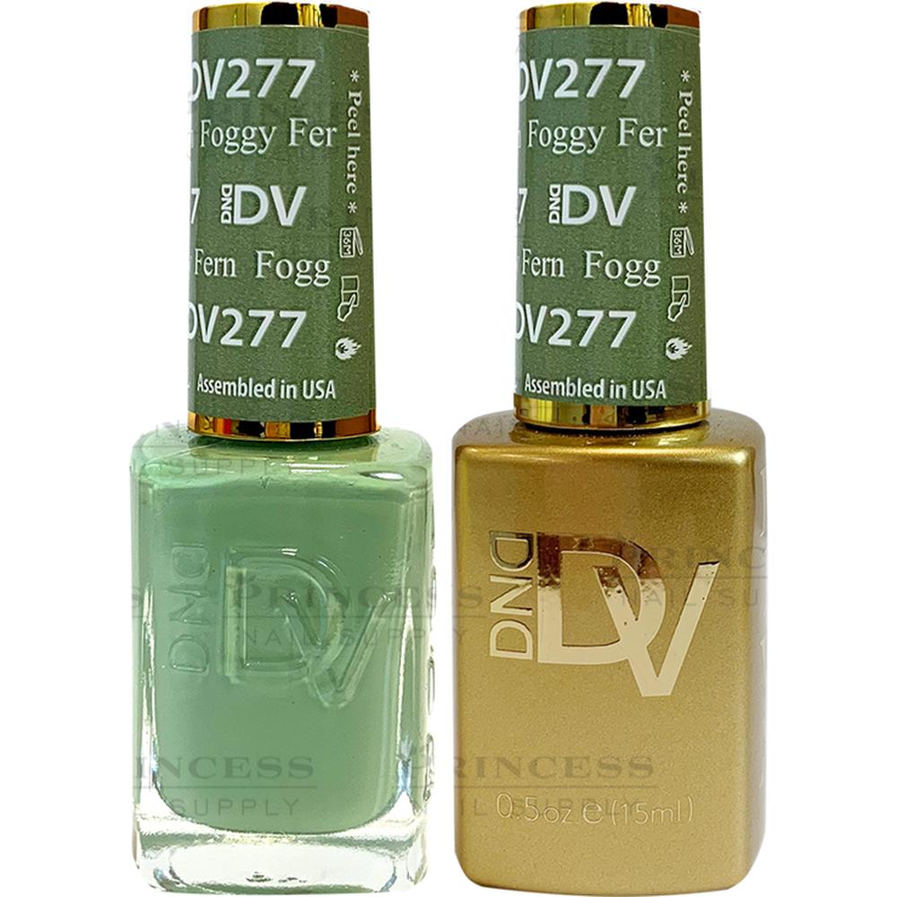 DND Diva Duo Gel - #277 - Foggy Fern / Soak-Off Gel Polish 0.5 oz. + Nail Lacquer 0.5 oz. Enhance your nail service offerings with the DND Diva Duo Gel, a perfect combination of soak-off gel polish and matching nail lacquer that delivers long-lasting, vibrant results. This duo set is designed for professionals who want to provide their clients with the flexibility of a durable gel manicure alongside the convenience of traditional lacquer. With superior coverage, rich pigmentation, and a chip-resistant finish, the DND Diva Duo ensures that your clients' nails stay flawless for weeks.