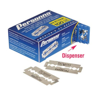 Double Edge Blades / 100 Pack. Super sharp stainless steel double edge blades are now 25% sharper! Use in standard safety razors or barber razors. Carton includes dispenser feature for easy one-at-a-time, paper-wrapped blade removal without opening box. Made in the U.S.A. 100 blades per box. Exclusively for schools.