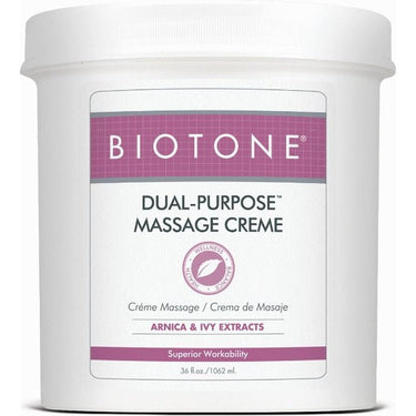For over three decades, BIOTONE® Dual Purpose™ Creme has stood out as a preferred choice among massage therapists. Its unique formulation combines the best qualities of both lotion and oil, offering a rich, luxurious consistency that glides effortlessly over the skin. This cream leaves the skin soft and deeply hydrated without a greasy residue, making it ideal for a variety of massage techniques ranging from high glide circulatory to slow, deep tissue modalities. Enhanced with Arnica and Ivy Extracts, it not only ensures a smooth application but also provides pain relief and promotes skin health.