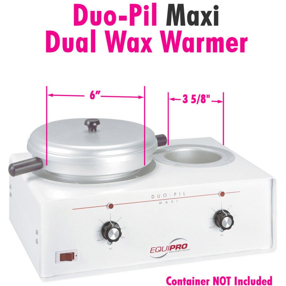 Constructed with high-quality materials, the Duo-Pil Maxi Dual Wax Warmer is designed to withstand the demands of your bustling waxing business. Its robust construction and two-year warranty ensure exceptional performance and reliability for years to come.Invest in the Duo-Pil Maxi Dual Wax Warmer by Equipro to elevate your waxing services and deliver unparalleled results to your clients. Please note that the Equipro Standard Hard Wax Warmer Container and Equipro Maxi Hard Wax Warmer Container are NOT included with the Duo-Pil Maxi Dual Wax Warmer and must be purchased separately.