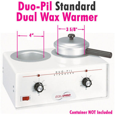Upgrade Your Waxing Services with the Duo-Pil Standard Dual Wax Warmer with 4" + 3-5/8" Diameter Tanks by Equipro. Duo-Pil Standard Dual Wax Warmer with 4 + 3-5/8 Diameter Tanks by Equipro</font> Enhance the efficiency and flexibility of your waxing business with the Duo-Pil Standard Dual Wax Warmer by Equipro. Equipped with dual tanks for lukewarm and hot wax, independent temperature controls, and rapid heating capabilities, this exceptional wax warmer ensures your products remain at a consistent temperature for optimal performance. The durable construction guarantees lasting reliability, making it an indispensable tool for your thriving waxing enterprise.