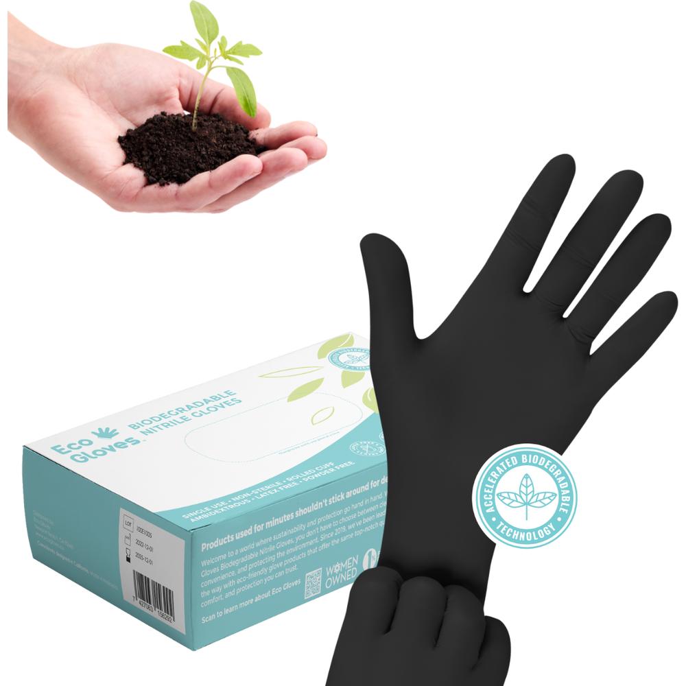 Eco Gloves Biodegradable Nitrile - Black - Small / 1 Case = 10 Boxes of 100