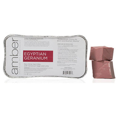 Egyptian Geranium Wax 2 lb. Block by Amber Products. Elevate your waxing services with the luxurious Egyptian Geranium Wax by Amber Products. Designed with the professional in mind, this premium non-strip hard wax is enriched with the soothing properties of Egyptian Geranium, the balancing touch of Spanish Sage, and the invigorating freshness of Lime Oil. Whether you're perfecting a Brazilian wax or catering to sensitive skin types, this 2 lb. block delivers unparalleled results, leaving your clients’ skin silky smooth and beautifully nourished.