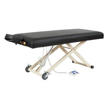 The electric pedal assist allows for easy adjustment of the table height from 16" to 31", ensuring optimal comfort for both therapist and client. The inclusion of wheel casters with a locking mechanism enhances the table's mobility, making room configurations a breeze.
