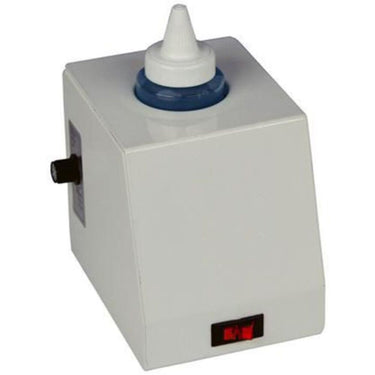 Electric Lotion Warmer Holds (1) 2" Diameter 8 oz. Bottle. Warmers feature easy to clean white powder coat finish on stainless steel. Adjustable knob temperature control from 90-120F, industrial grade heating element that maintains contents just above body temperature and a 6 ft grounded power cord. Units operate for pennies a day and come with complementary bottles.
