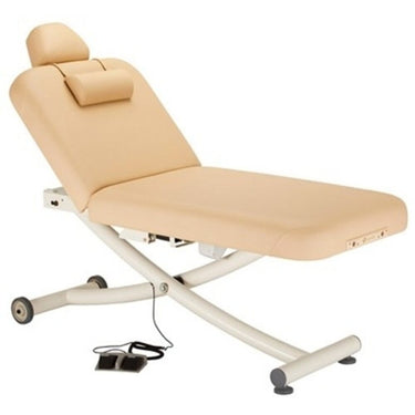 Ellora Vista Tilt Massage Table. The Ellora Vista is a stronger and sleeker version of the universally popular Ellora electric lift table. The Ellora Vista is the perfect economical blend of beauty and functionality for day spas, medi-spas and resorts. Featuring a whisper-quiet yet powerful, UL listed electric lift actuator with on-demand height adjustments, this ADA compliant workhorse is designed for exceptional comfort, easy care, and years of trouble-free use. Shown with optional salon pillow and neck roll.