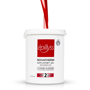 Epillyss NOVATHERM WAX DEPILATORY GEL with Essential Oils / 24 oz. Epillyss NOVATHERM WAX DEPILATORY GELA hair removal gel with superior adherence Its unique formula rich in trace elements gives NOVATHERM hair removal gel a shiny and sparkly appearance. NOVATHERM hair removal gel has superior adherence, allowing for hair removal just 3 days after shaving. Caution: This wax cannot be heated in the microwave.