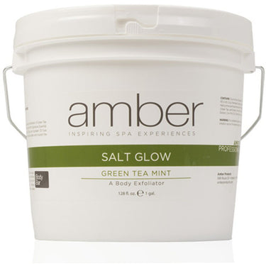 Amber Salt Glow - Green Tea Mint (128 oz). Transform every treatment into a luxurious experience with Amber Salt Glow in Green Tea Mint. Crafted for professionals, this exfoliating body scrub blends the rejuvenating properties of Dead Sea salts with nourishing oils and invigorating scents to leave skin silky smooth and refreshed. Designed to elevate spa services, it’s the perfect choice for promoting healthy, glowing skin while offering a moment of tranquility to clients.