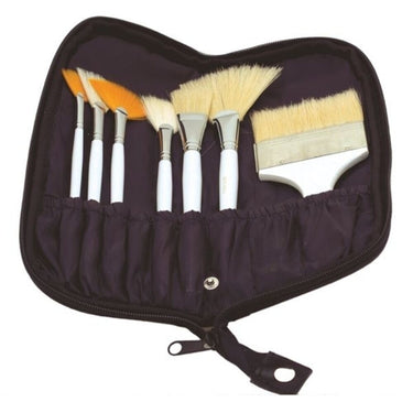 Face & Body Brush Starter Kit. The Face & Body Brush Starter Kit is the perfect solution for professionals in the beauty industry looking for an all-in-one, high-quality set of brushes. Whether you're just starting out or upgrading your tools, this set ensures you have everything you need to deliver flawless results for your clients. Designed for both face and body treatments, this set of seven brushes comes neatly packaged in a convenient zip case for easy storage and portability.