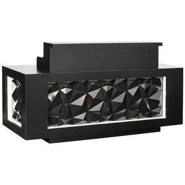 Facet Reception Desk / 78" Wide / Available in All Black, Black & White, or All White by Whale Spa. Part of the Facet Collection, the Facet Reception Desk incorporates Whale Spas Diamond ShadowTexture into this new models design. Brilliantly lit by LEDs, the Diamond ShadowTexture is a 3D texture that allows for the facet of each diamond to be lit at different angles, creating an aesthetically pleasing look.