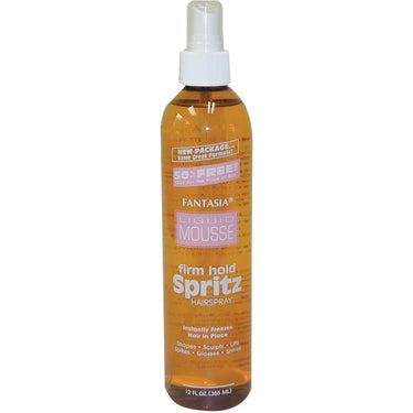 This spritz is excellent for relaxed hair and can be used for extra firm hold by spraying each section of hair before curling or for a firm hold, simply spray evenly over the entire head after styling. Achieving your desired hairstyle has never been easier with Fantasia Spritz Pink / 12 oz.