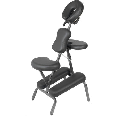 Your clients will experience unparalleled comfort with the Fold-Away Massage Chair's thick, foam-padded cushions. The black, leather-like material not only provides a sleek and professional appearance but is also easy to wipe clean between sessions, ensuring hygiene and convenience. The chair's adjustable features, such as the angled face cradle and padded chest cushion, allow for optimal positioning to accommodate clients of various sizes. This adjustability ensures that your clients remain comfortable and relaxed, no matter the duration of the massage.