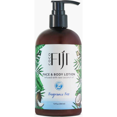 Fragrance Free Moisturizing Lotion: Made With Certified Organic Coconut Oil / 12 oz. Each / Case of 12. 12oz. Fragrance Free nourishing lotion; made with cold pressed, certified organic, virgin coconut oil. Bring the Earth to your skin with this moisturizing face and body lotion inspired by the Fijian Islands. Case Pack of (12) 12 oz. bottles.