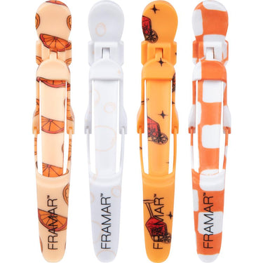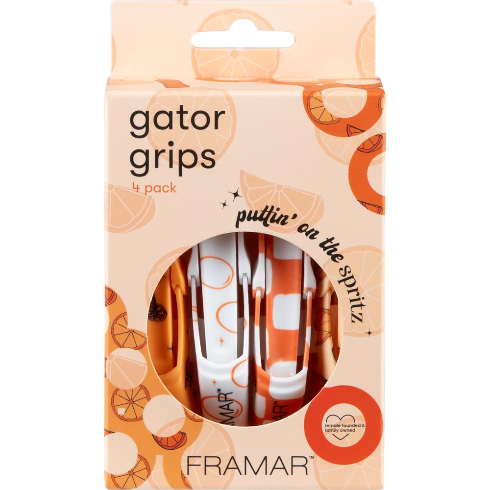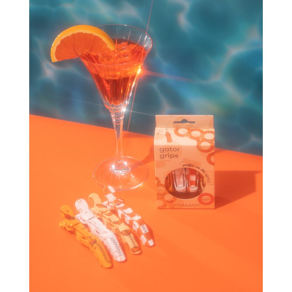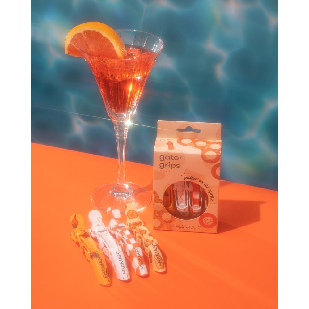Framar Puttin' On The Spritz Gator Grips - 4 Pack. Sizzling summer services call for tools that work as hard as you do—and Framar’s Puttin' On The Spritz Gator Grips deliver more than just poolside flair. Designed with the pro in mind and dripping in juicy orange hues, these clips do more than turn heads on your station. They’re crafted to lock in sections with confidence and never slip, no matter how fine or thick the hair, or how high the humidity climbs. Whether you’re foiling, balayaging, or executing a voluminous blowout, these wide-mouth, rubberized clips offer industrial-grade performance with the splashy personality your salon deserves.