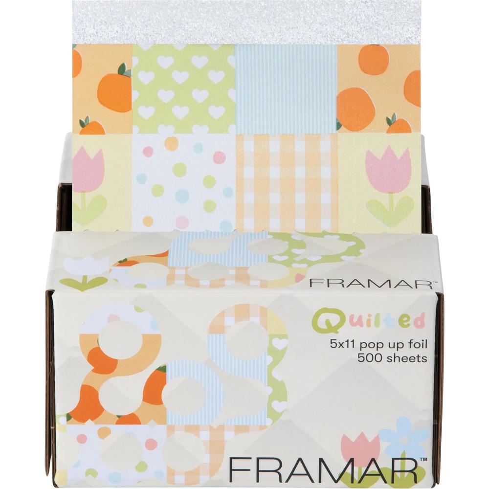 Designed for ease of use and superior performance, the Framar Quilted Pop-Up Sheets elevate the coloring experience for both professionals and clients alike. These 5x11 sheets are pop-up, allowing for quick access, and the quilted texture provides better grip for precise, flawless application. Whether youre doing highlights, balayage, or any other service requiring foiling, these sheets hold your product in place and maintain structure throughout the treatment. The pastel-colored patchwork pattern and floral elements add an aesthetically pleasing touch to your station, making every service feel like a pampering session.