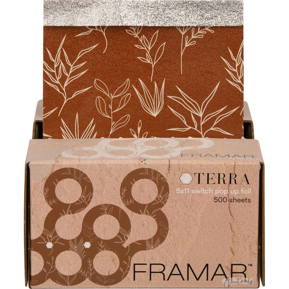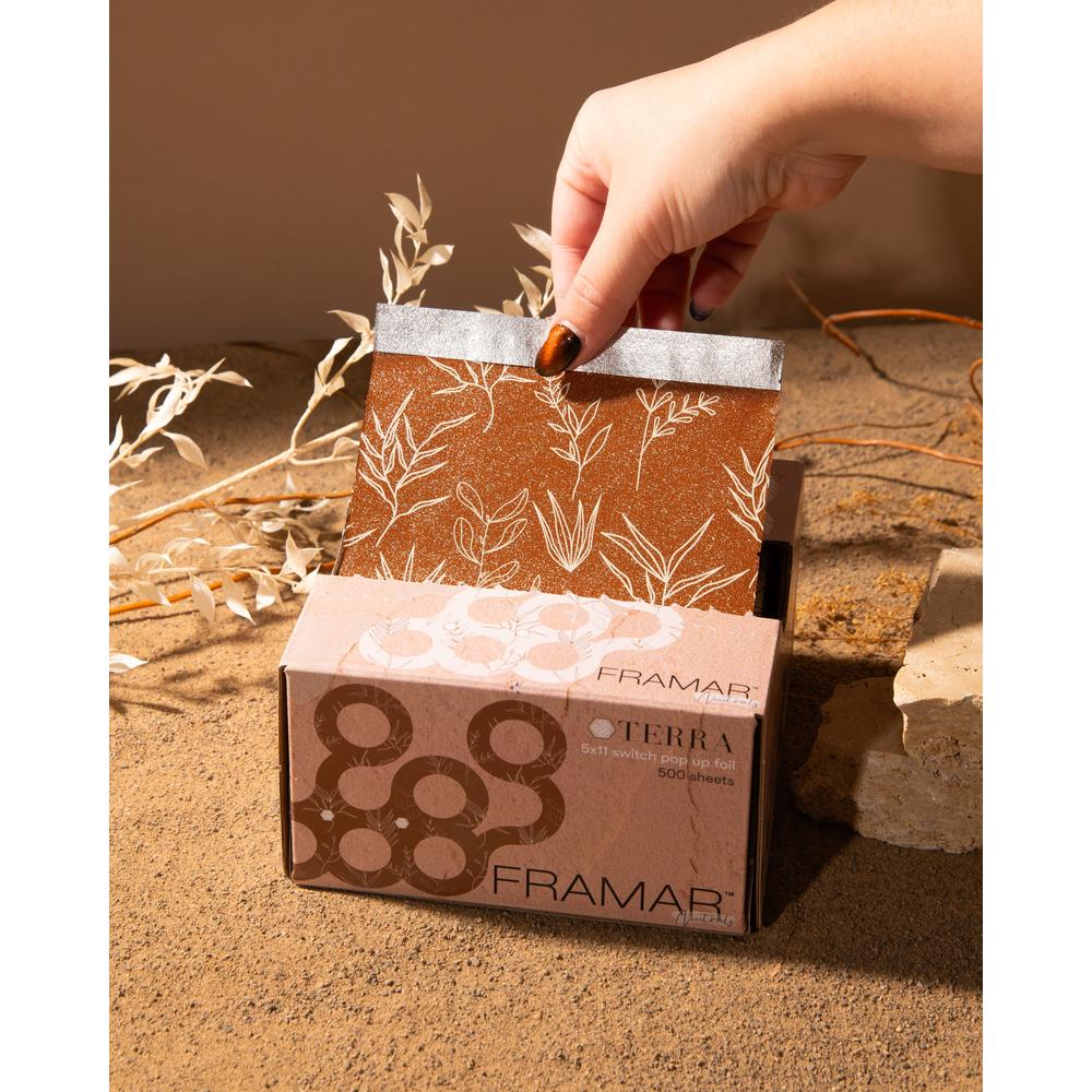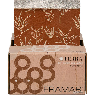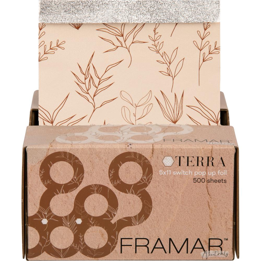 Framar Terra 5x11 Switch Pop-Up Foil Sheets 500 Count. For stylists who value efficiency and style, Framar's Terra 5x11 Switch Pop-Up Foil Sheets are an absolute must-have. Designed to streamline your service, these pre-cut and pre-folded foils eliminate prep time, letting you focus on what matters most your craft. Infused with earthy, Mediterranean-inspired tones, these foils not only provide top-tier performance but also bring an element of natural elegance to your workspace. Whether youre crafting balayage, highlights, or color overlays, the Framar Terra foils elevate your experience and workflow.