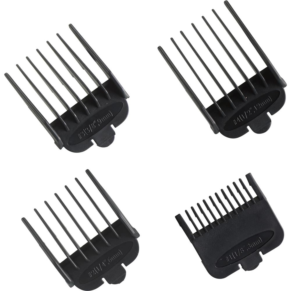 - 4 additional guide combs (3 mm12 mm) expand your styling range