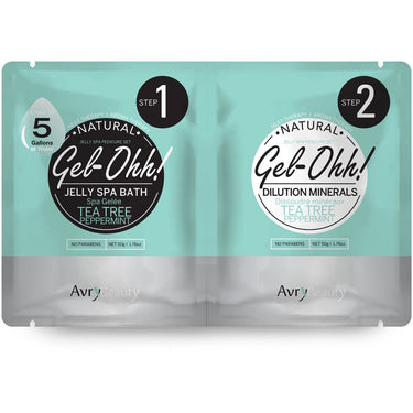 Gel-Ohh Jelly Spa Pedi Bath - Tea Tree & Peppermint / 1 SET - (1) Tea Tree & Peppermint Jelly Spa Bath / 50 Grams - 1.76 oz. + (1) Tea Tree & Peppermint Dilution Mineral / 50 Grams - 1.76 oz. by Avry Beauty. This Tea Tree & Peppermint Jelly SPA Pedicure Bath Set provides the ultimate SPA Pedicure experience for relaxation using heat therapy, which soothes aching joints and muscles. Jelly Bath is FREE OF harmful chemicals or preservatives and is fully bio-degradable. Two part set: (1) Tea Tree & Peppermint Jelly Spa Bath / 50 Grams - 1.76 oz. + (1) Tea Tree & Peppermint Dilution Mineral / 50 Grams - 1.76 oz.