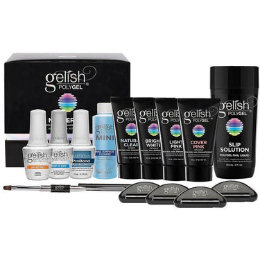 Gelish POLYGEL Master Kit - Professional Nail Enhancement. Perfect your nail enhancement game with the Gelish POLYGEL Master Kit. Designed for professionals, this kit includes everything you need to create flawless, long-lasting natural nail enhancements that leave your clients impressed. Combining the best features of both acrylic and hard gel, Gelish PolyGel offers an innovative all-in-one formula for stunning results. Whether you're creating sleek, natural-looking nails or bold, customized designs, this comprehensive kit equips you with high-quality products and tools to elevate your salon's service offering.
