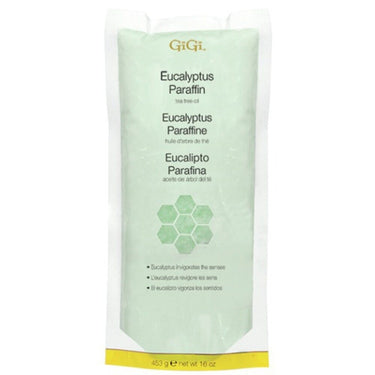 Gigi Eucalyptus Paraffin Wax / 1 lb. GiGi Eucalyptus Paraffin is infused with Tea Tree Oil, a natural healing agent. The essence of Eucalyptus helps to invigorate and relax the body. Size: 1 lb.