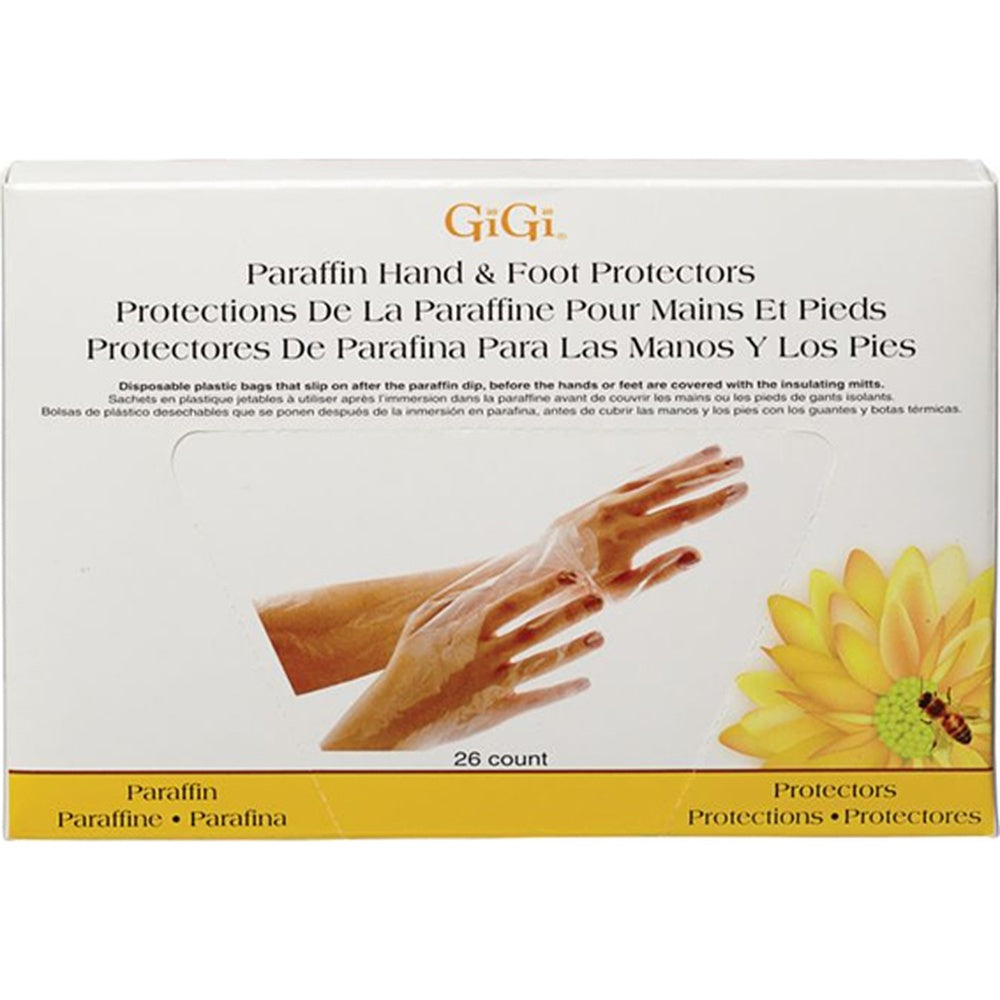 GiGi Paraffin Hand & Foot Protectors (26 Count). Keep your paraffin services clean, comfortable, and consistent with these disposable plastic protectors designed for hands and feet. They slip on after the paraffin dip to help maintain a sanitary barrier while supporting that cozy, wrapped-up paraffin feel. The extra-long length is made to reach most elbows, helping reduce mess and making post-dip handling feel more controlled.