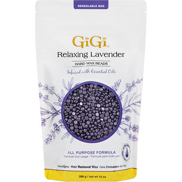 GiGi Relaxing Lavender Hard Wax Beads / 14 oz. Designed with professionals in mind, GiGi Relaxing Lavender Hard Wax Beads offer a superior waxing experience that ensures smooth, long-lasting results without the hassle of traditional strip waxing. Whether you're performing full-body or facial waxing, this gentle yet effective formula removes unwanted coarse hair or the finest fuzz, leaving your clients with soft, flawless skin. Infused with the calming scent of lavender essential oils, it provides a soothing experience, ideal for sensitive skin types.