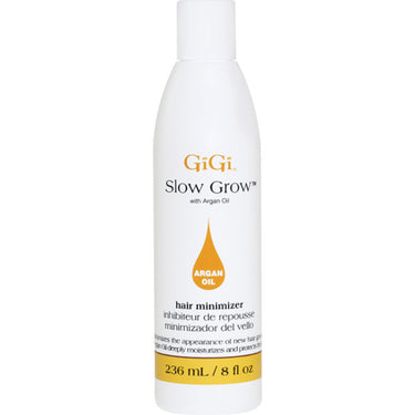 GiGi Slow Grow Wax with Argan Oil / 8 fl. oz. - 236 mL. GiGi Slow Grow with Argan Oil is a fast absorbing, nourishing lotion that contains Papain & Natural enzymes to slow down the formation of new hair (known as keratinization). This anti-keratinization process will make the hair finer and easier to remove when waxing. Infused with exotic Argan Oil to deeply moisturize and protect the skin.